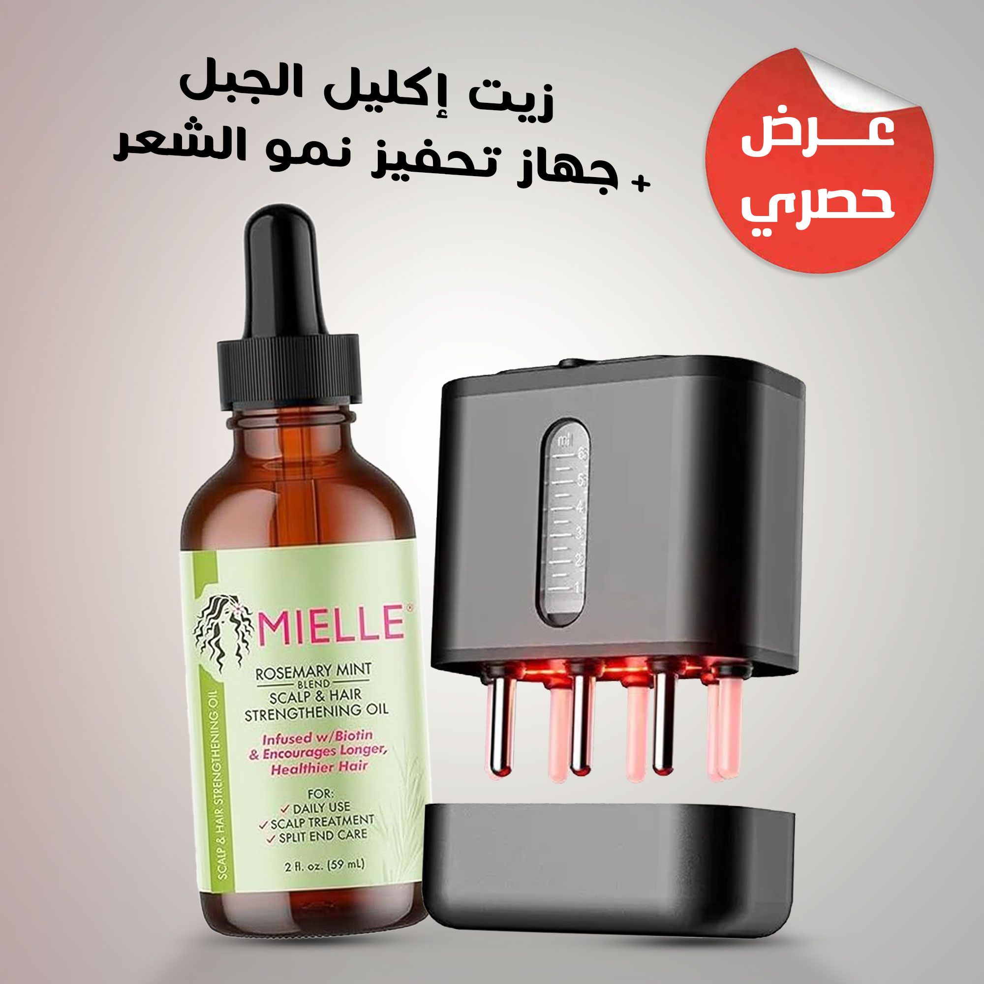 خلّي وقت العناية بالشعر يصير لحظة تدليل لك! مع زيت إكليل الجبل وجهاز تحفيز نمو الشعر.