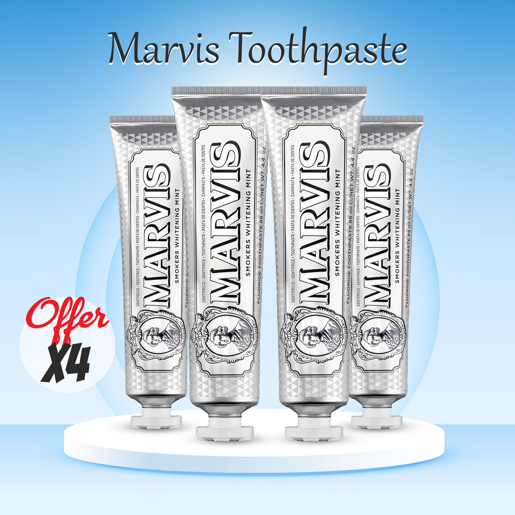 • 4 عبوة معجون أسنان مارفيس مبيض 85 مل