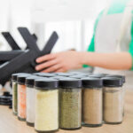 • يحافظ رف التوابل ذو العجلات الدوارة على تنظيم التوابل والأعشاب.