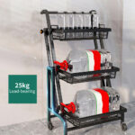 • استاند 3 طوابق متعدد الاستخدام، يجيك بعجلات دوارة، وقابل للتعديل، ويسهل نقله لأي مكان.