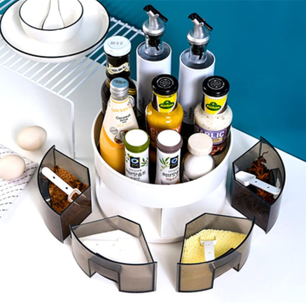 • مناسب لحفظ العلب، الزجاجات، التوابل، والملح والفلفل.