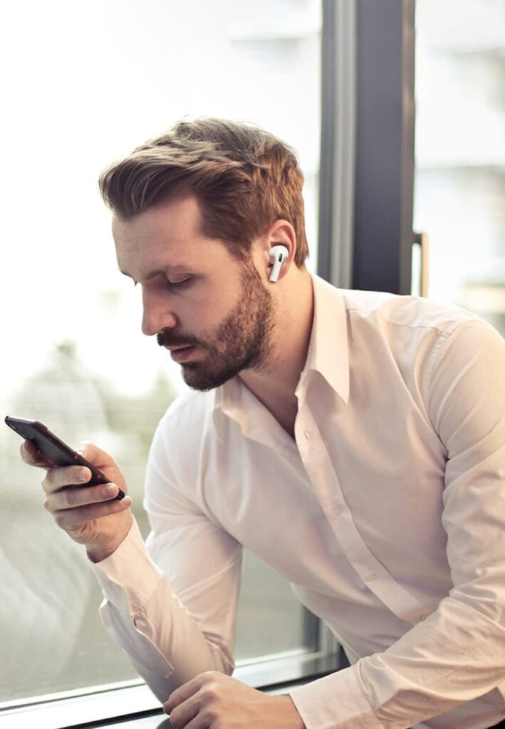• تشغيل تلقائي عند وضعها في الأذن وإيقاف عند إزالتها.