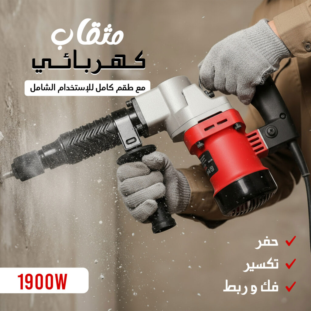 مثقاب تكسير وحفر كهربائي 1900 واط – مع طقم كامل للإستخدام الشامل