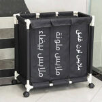 1 × سلة غسيل بعجلات وقسمين مع غطاء